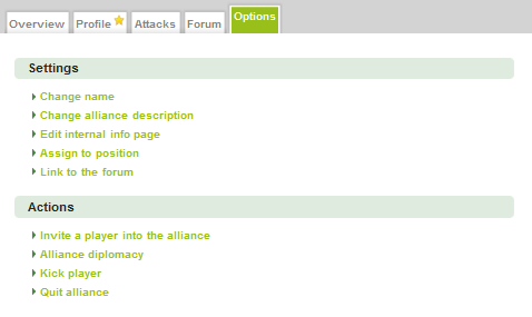 Go to your alliance (click the shield on the right-side menu for quick access) and select the "Options" tab. There you will find two sets of available options: