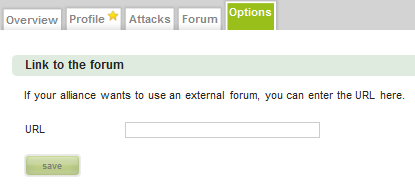Be aware that in case you enter a wrong link your alliance members cannot open the forum by clicking on the "Forum" tab any more. Therefore it may be better to let it empty in case you use the alliance forum provided by TRAVIAN.