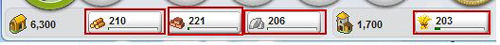 There you can see the productions for Lumber, Clay, Iron and Crop: