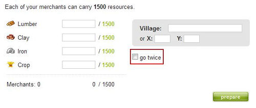 This feature in Plus membership allows a player to run his Merchants to target village twice with the same amount of resources if there's such amount present. To enable such a run you need to check the box in the Marketplace, which is displayed below the coordinates: