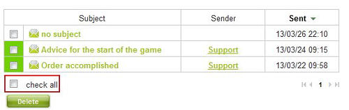 The “Check all” button allows player to check all reports or messages currently displayed and manipulate them afterwards. Deleting messages then becomes easier. If you have Gold Club you can also Archive a group of reports or messages.