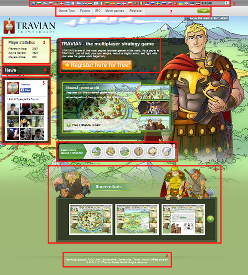 The home page (www.travian.com) is a very important page! It’s how we register for new servers, get to the login page for the different servers, and also to find announcements and useful links. Let’s get started: