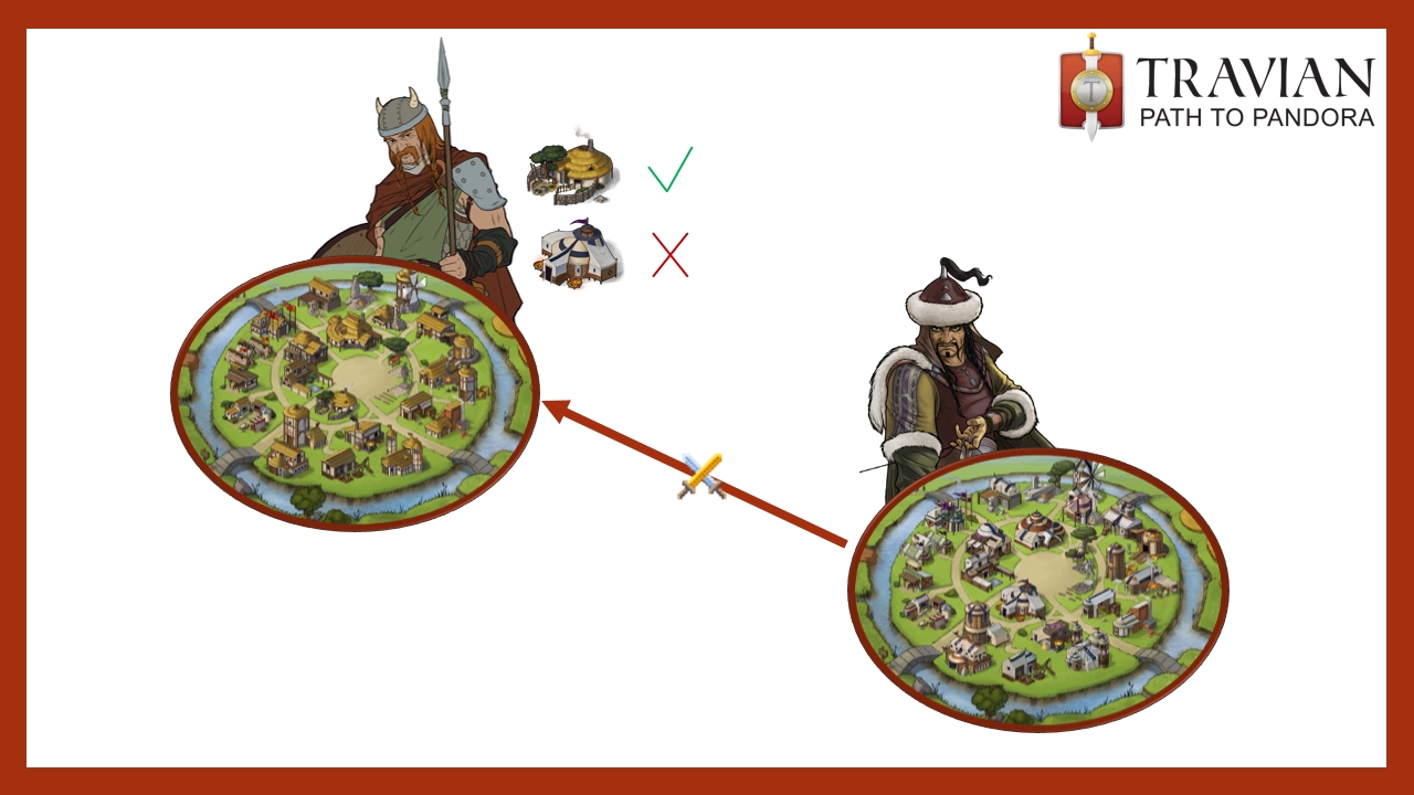 When you conquer another tribe's village in Travian: Path to Pandora, the village will not change tribe type, except for the Natars (see below). Let's see how this works with a visual example.